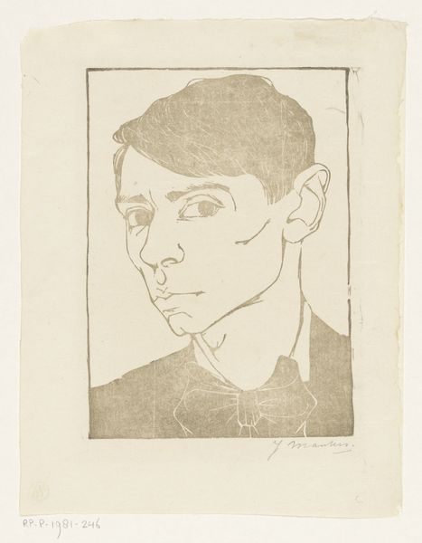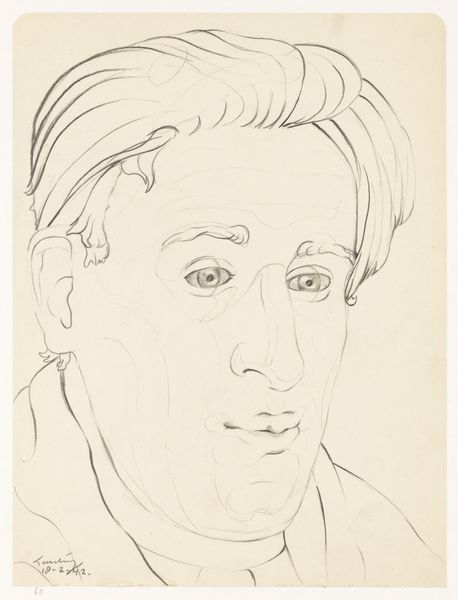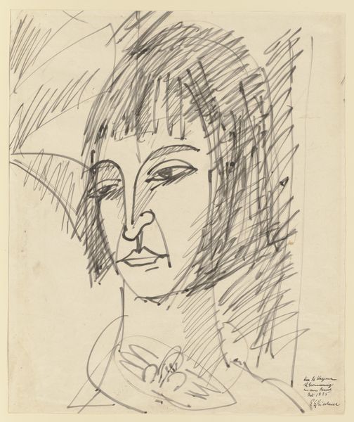 Editor: So, this is Harald Giersing's self-portrait in three-quarter profile, created sometime between 1881 and 1927. It’s a pencil drawing on paper, and the scratchy lines give it a really raw, almost anxious energy. What’s your take? Curator: It's fascinating to see Giersing’s expressive line work in the context of early 20th-century expressionism. The sketch seems to deconstruct the traditional portrait. How does it challenge or reinforce societal expectations around portraiture in that period? Editor: I hadn't thought of it like that, but the unfinished feel definitely subverts the idea of a formal, idealized representation. Maybe he's reflecting the fragmented, uncertain experience of modern life? Curator: Precisely! And it raises the question: Who has the right to create and circulate these images? Was this drawing intended for public consumption, or was it a private exploration of self? The act of self-representation can be incredibly political, especially within the confines of artistic institutions and public perception. Editor: That’s true; a self-portrait always tells a specific story by its selection. Do you think that Expressionism, emerging in this period, shifted the accessibility and power of public-facing art? Curator: Undoubtedly. Expressionism broadened who could be an artist, decentering from academic styles to emotionality, but it also came with risks. The bold expressiveness in the work opened the artist up to potential socio-political criticism. I think with any artwork it is vital to contemplate the push-pull of accessibility versus acceptability. Editor: So interesting! I learned so much about the political implications of art styles, especially Expressionism. Curator: Likewise! The dialogue emphasizes the multifaceted context within which artwork exists.