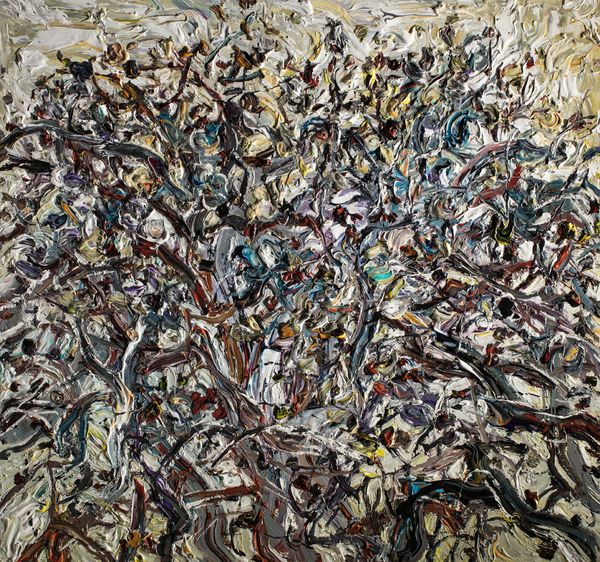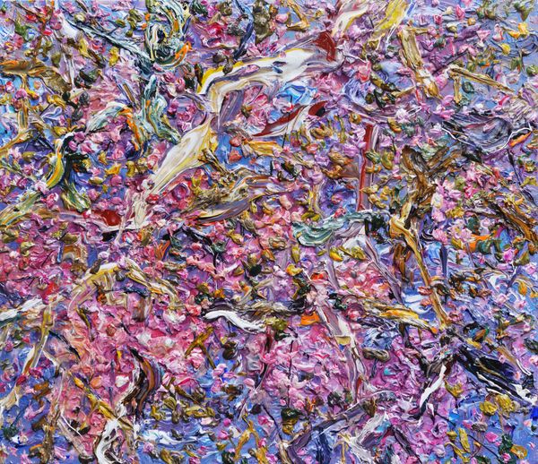 Wang Xinfu made this painting called 碎点紫藤 with, it seems, a real passion for thick paint. I love how the surface just explodes with color, a mass of purples and greens and browns laid on with such physicality that you can almost smell the oil paint. It's like Van Gogh, but even more intense, a real celebration of the materiality of painting. Look closely and you’ll see these little dashes of color, almost like the artist was jabbing at the canvas, each mark full of energy and life. It's a process that feels both chaotic and deliberate, a kind of controlled frenzy. For me, it's a reminder that painting isn't just about representation, it's about the pure joy of making something out of nothing. It's about embracing the mess, the accidents, the unpredictable nature of the medium. Kind of like life, right?