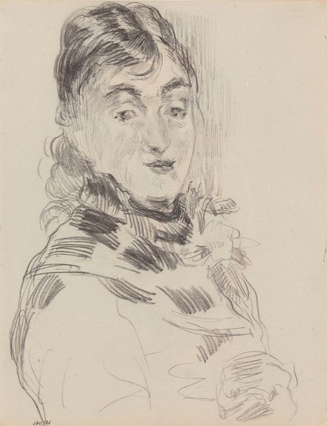 Editor: Here we have Jan Veth's portrait of Hélène Lapidoth-Swarth, dating from between 1874 and 1925. It's a delicate pencil drawing. The profile view and the soft lines give it a serene quality, almost contemplative. What stands out to you in this piece? Curator: The rendering in profile, first of all, suggests a certain classicism, a return to the ideals of Greek and Roman portraiture where the profile allowed for a very clear articulation of character, even when subtly drawn. It speaks of an attempt to immortalize or essentialize her identity. But what do you think this says about how we want to be remembered? Editor: That's interesting; I hadn't considered the classical reference. So it's about more than just capturing a likeness? Is the artist trying to tell us something specific about Hélène Lapidoth-Swarth? Curator: I believe Veth uses symbolic conventions in this drawing that indicate status and intellectual depth. The sitter's composed hairstyle and simple clothing indicate someone who values intellect and artistry rather than ostentation. The minimal rendering focuses attention on the face. Do you feel like her character is successfully conveyed by such simple techniques? Editor: I do, actually. Her gaze and the set of her jaw seem determined. It’s subtle but definite. It almost suggests that he wanted her to be remembered a particular way... noble even. Curator: Precisely! What we witness in this drawing, then, isn't merely the artist’s skill in representation, but an insight into the construction of memory. Each stroke becomes a purposeful gesture in crafting a visual narrative. Editor: I'm starting to appreciate how much a simple drawing can convey, more than just visual likeness. It holds so many cultural layers. Curator: Exactly. Art reminds us that representation is a powerful form of cultural storytelling.