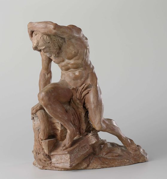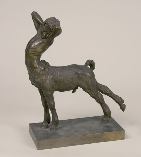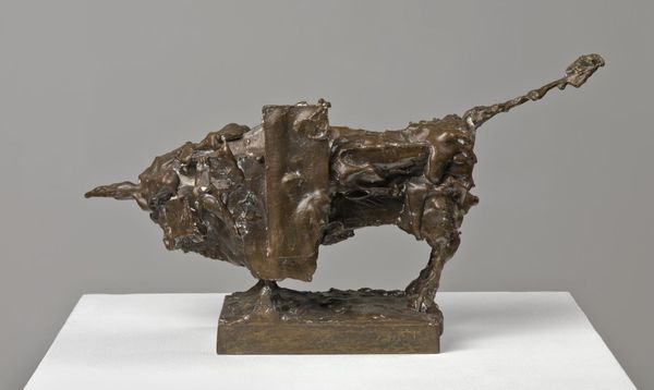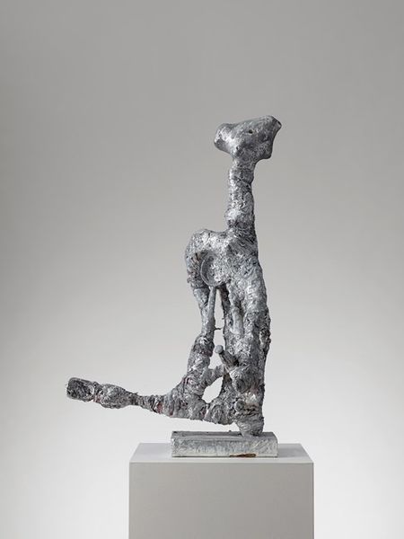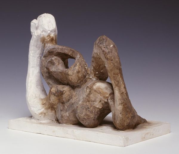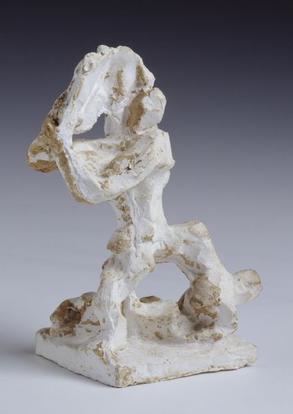 Curator: Jacques Lipchitz, born in 1891, created this intriguing plaster sculpture entitled "Woman with Hair," currently held in the Tate Collections. Editor: It feels surprisingly light, almost buoyant, despite the material. The open space where the face should be is quite striking. Curator: The work reflects Lipchitz's engagement with cubism. We can consider the historical context – the early 20th century’s radical shifts in representation and the rise of the avant-garde. Editor: Right, it's like a deconstructed portrait. The rough texture almost feels primal, like something unearthed. I wonder if the void is about absence or potential. Curator: It evokes interesting questions about gendered representation, fragmentation, and the socio-political anxieties of its time. Editor: I find it oddly comforting. It's unfinished, but somehow complete in its incompleteness. Makes you think about the stories we tell ourselves. Curator: It's a complex piece, inviting numerous readings through various lenses. Editor: Absolutely, and a reminder that art is always a conversation, not a conclusion.