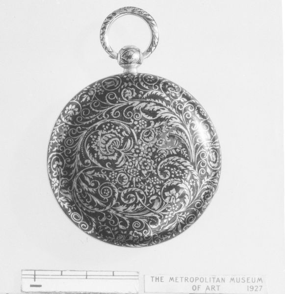 This watch was crafted by the Firm of Esquivillon Frères, likely between 1795 and 1805, and is made of gold, enamel, and jewels. During the late 18th century, timepieces like this were more than just functional objects. They were potent symbols of wealth and status. The watch's intricate floral design, set with jewels, reflects the period's taste for opulence and naturalistic motifs. Consider what it meant to possess such an object during a time of great social inequality. Who had access to time? How was their time valued versus others? It's likely this watch was commissioned by an elite member of society, a world apart from the upheaval of revolution, and the stark realities of everyday life for most people. It is easy to get lost in the beauty of the object. But, it serves as a poignant reminder of how aesthetics can both reflect and obscure the complexities of social and economic power.