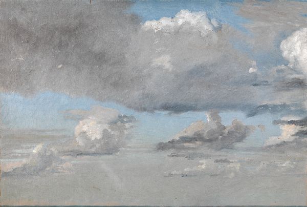 Editor: This is Edgar Degas's "Sky Study," a pastel drawing from 1869, now in a private collection. There's something really striking about the color contrast – the blue sky against that warm, almost brown paper. It feels very immediate, like a fleeting moment captured. How do you interpret this work, especially considering Degas's more famous subject matter? Curator: It's interesting you mention the "fleeting moment." Considering Degas's position within the Impressionist movement, even a seemingly simple "sky study" speaks volumes about the shifting artistic landscape. Prior to this period, cloudscapes were often relegated to backdrops within history paintings or allegorical scenes. The move towards plein-air studies – depicting light and atmosphere directly from nature – represents a democratic shift, decentering traditional hierarchies within the art world. Editor: So, even a sky study can be a statement? Curator: Absolutely. It's not just about technique. By elevating the mundane—a transient cloud formation—to the level of art, Degas participates in a broader movement that questions academic standards and opens art up to modern experience. Where once artists sought patronage depicting scenes that reinforced specific ideologies and political values, a single cloud is suddenly important. Why do you think a study like this might find value in the art market and public sphere? Editor: Well, maybe people connected with its simplicity? The rapid industrialization changed life massively at the time, maybe the general public was seeking solace in depictions of untouched nature. Curator: Precisely. Furthermore, the rise of exhibitions and art criticism allowed for a more direct engagement between artists and the public, and studies like these provided something relatable that disrupted academic expectations and promoted a sense of progress. It becomes not just a depiction of a cloud, but a symbol of artistic liberation. Editor: I never thought about it that way, this definitely changes my understanding. It makes you wonder what today's equivalent might be. Thanks for shedding some light on this!
