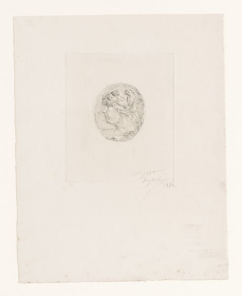 This is a print made by Auguste Danse in 1874, depicting a medal from 1563 portraying Jan Walravenz. The print translates the medal's three-dimensional form into a two-dimensional image, using a printing process that captures the texture and detail of the original object. The choice of printmaking as a medium is crucial. It allowed for the widespread dissemination of Walravenz's image, and the medal itself would have been created through techniques like casting or striking, processes demanding skilled craftsmanship. The original medal served as a symbol of status, and authority, carefully crafted to convey power. Danse's print replicates this sense of detail, and texture, reminding us of the labor involved in both creating the original medal, and reproducing it for a wider audience. By focusing on the processes of reproduction, we can consider how images and symbols circulate within society, influencing perceptions of status, and historical memory. The value of this artwork lies not only in its aesthetic qualities, but also in its representation of labor, and social status.