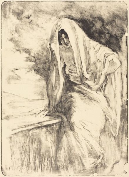 José Garnelo made this painting, Dolorosa, with oil on canvas, though when exactly is a mystery. The sombre palette, dominated by dark browns and blacks, pierced by flashes of white and yellow, gives the whole scene an intense, almost theatrical feel. The paint seems applied with a kind of urgency, with visible brushstrokes that add texture and depth, drawing the eye in. Look at the way Garnelo renders the fabric of her dress. The thick impasto creates a play of light and shadow. The light from the lantern highlights the folds and creases, accentuating the weight and texture of the material. It's like he's not just painting a dress, but capturing a feeling, a state of mind. It reminds me a bit of El Greco, the way the figures are elongated and emotional. Ultimately, like all good art, Garnelo's painting leaves us with more questions than answers. It invites us to contemplate the complexities of grief, faith, and the human condition.