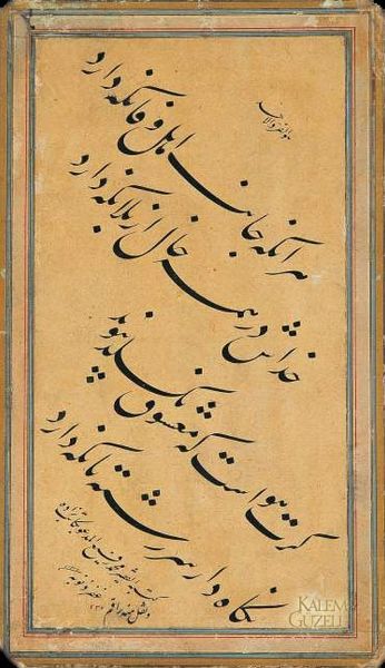 This is a Page of Calligraphy by Muhammad Ashraf Al-Radhawi, currently held at the Metropolitan Museum of Art. The calligraphic work uses the Arabic alphabet, which carries a rich historical and cultural weight, particularly in Islamic art where calligraphy is not merely writing but a venerated art form. Al-Radhawi’s piece is significant for its spiritual and artistic depth. The script, interwoven with decorative motifs, reflects a deep connection to both the divine and the aesthetic principles valued in his community. The choice of specific texts would have been influenced by the artist's personal beliefs, education, and the socio-political context he lived in. Calligraphy like this often served to reinforce religious identity and cultural values, particularly in times of cultural exchange and potential conflict. What you see here isn't just an aesthetic endeavor, but an embodiment of cultural and religious identity, a visual form of prayer and meditation. Al-Radhawi’s calligraphy invites us to reflect on the power of words, the beauty of form, and the profound connection between art, faith, and identity.