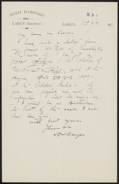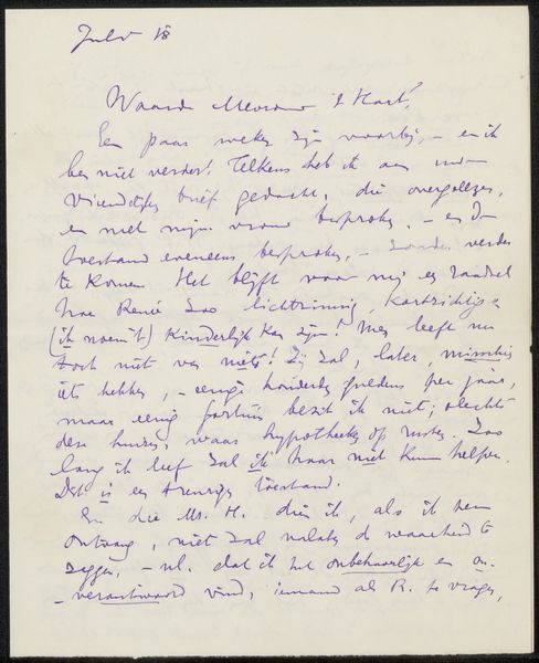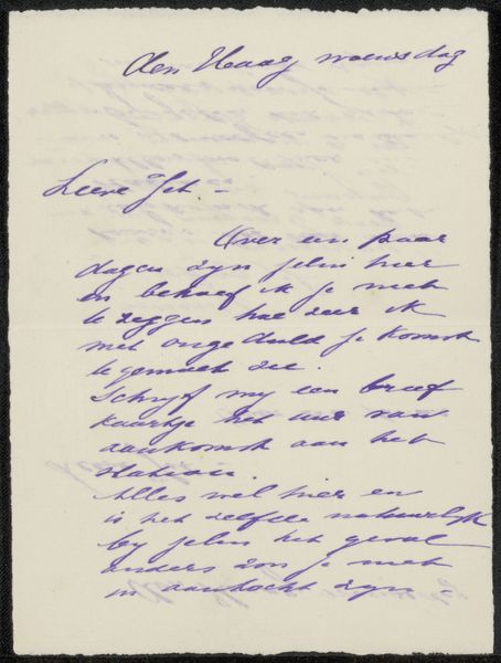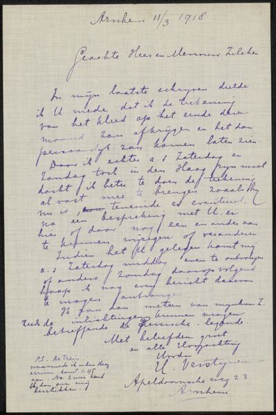 This letter was written by Henri Verstijnen in 1926 with blue ink on paper. Words, in their symbolic form, have always been powerful tools of communication and expression. Here, we see them carefully arranged, each stroke of the pen carrying Verstijnen's intent. Throughout history, written communication has taken many forms, from ancient hieroglyphs to modern typography. Each iteration reflects the cultural values and technological capabilities of its time. Consider the evolution of handwriting itself, from the formal scripts of scribes to the personal flourishes of Verstijnen's hand. The act of writing engages our collective memory, evoking a sense of connection to past generations who have used the same medium to share their thoughts and experiences. Emotionally, the handwritten word carries an intimate weight, a direct trace of the author's presence. Verstijnen's letter, with its unique script, provides a personal touch that resonates. The cyclical nature of symbols ensures their constant resurgence. As we engage with this letter, we participate in the ongoing evolution of communication, acknowledging its power to shape our understanding of the world.