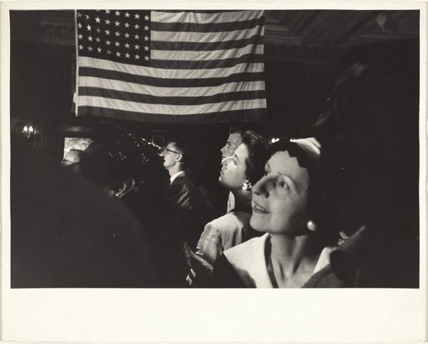 Robert Frank captured this photograph, “Convention Hall—Chicago”, using black and white film sometime in the mid-20th century. The image presents a segregated space, seemingly at a political or social gathering. A sign declaring “No Men Allowed on the Lower Level” dominates the frame, questioning conventional gender roles and power dynamics. Taken in the United States, this photograph speaks volumes about the period's evolving social landscape. The sign can be seen as a form of resistance against male dominance, especially given the broader context of the feminist movement gaining traction at the time. Flags in the background suggest a patriotic backdrop, perhaps a national convention, which makes the act of gender segregation more pointed. To fully grasp the image, one might delve into archives of feminist literature, political science journals, and historical accounts of social movements during that era. Photographs like this serve as primary source material, documenting moments of social change and institutional critique, urging us to question the structures that govern our society.