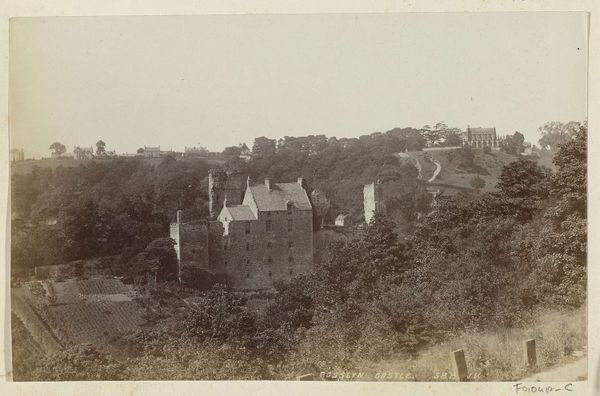 Curator: Here we have a photograph titled "Gezicht op Rothenburg ob der Tauber," dating back to 1900. The work employs the albumen print technique. What are your first thoughts? Editor: There's a hazy, almost dreamlike quality to it. A sense of stillness, like a memory fading at the edges. Curator: Absolutely. Note the masterful composition. The walled city occupies the higher ground, the apex of a carefully orchestrated visual hierarchy, doesn’t it? Editor: The choice of vantage point certainly privileges the built environment, the houses dotted below seem small and insignificant in contrast. I'm curious, what relationship were the inhabitants meant to have with this place? Was it idyllic, or was the city a fortress looming above their daily lives? Curator: An excellent question. Let's examine the tonal range. The photographer's skilled manipulation of light and shadow, particularly evident in the rendering of the city walls and rooftops, contributes significantly to the overall aesthetic. Editor: While you highlight the technical aspects, which are undeniable, I keep wondering about the narratives excluded from this idealized depiction. Where are the marginalized voices of Rothenburg? Did this photograph become propaganda? The workers, women, ethnic minorities, are they represented in the framing of German national identity? Curator: You raise crucial questions of representation, no doubt. Considering its categorization within German Expressionism, the artwork perhaps encapsulates the period’s prevailing yearning for national romanticism—it is important that the picture conveys historical continuity. Editor: Perhaps. However, German Expressionism was never without contradiction: in fact, what this photo conveys is also an expression of power. The high angle of the camera reinforces social distinctions, reminding us of the structures—architectural, social, political—that determine whose stories are valued and whose are silenced. Curator: An incisive reading, one that allows us to appreciate the work’s historical context alongside its visual elegance. Thank you. Editor: A worthwhile deconstruction. It encourages reflection, even debate. Thank you too.