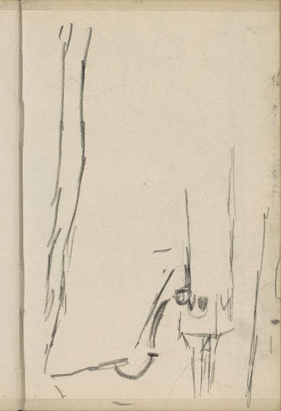 George Hendrik Breitner made this sketch titled 'Cat and a Figure Study' with pencil on paper. Breitner was known for his involvement with the Amsterdam Impressionism movement, capturing the everyday life of the working class and the urban environment. This sketch provides a glimpse into Breitner's process, as his focus wasn't always on the grand or the picturesque. It’s a simple rendering of a domestic scene, of ordinary moments. Look closely and you can see how the cat and figure are sketched with a gentle hand. The intimate setting creates a sense of quiet introspection, typical of Breitner’s approach to his subjects. The sketch maintains a certain degree of anonymity, allowing the viewer to interpret the relationship between the cat and the figure. In considering this sketch, we see how even the simplest of subjects can offer a lens through which to consider themes of companionship, domesticity, and the quiet beauty of everyday life.