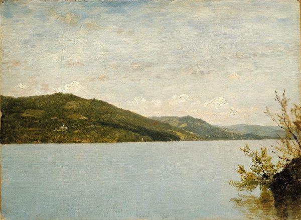 John Frederick Kensett’s painting, *Lake George*, now in the Brooklyn Museum, presents a landscape dominated by a palette of muted grays and browns, evoking a somber and contemplative mood. Note how the composition is structured by the horizontal expanse of the lake, contrasted against the turbulent sky. Kensett masterfully balances the play of light and shadow to create depth, drawing the eye toward the distant, softly rendered mountain. Here the artist destabilizes the traditional landscape by shifting our focus from foreground detail to the atmospheric perspective, and the structural elements of the painting evoke a sense of sublime natural space. The trees on the left, rendered in autumnal hues, frame the scene while mirroring the vertical thrust of the distant mountain. The painting subtly engages with Romantic ideals, emphasizing nature's power and the individual's emotional response to it. Observe, finally, how Kensett’s strategic use of light and atmospheric effects encourages ongoing interpretation of this landscape.