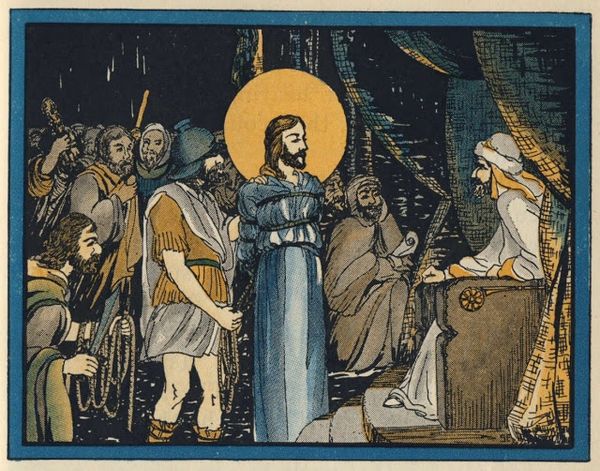 Curator: Here we have a painting entitled "Jesus Christ," dating to 1940. It appears to be tempera on… possibly board, given its dimensions and the character of the visible brushstrokes. Editor: It's certainly striking. The high-keyed palette and flattened perspective create an almost dreamlike scene. I see what could be construed as a naiveté in the rendering, giving it an immediate appeal, almost childlike. Curator: That naive quality is interesting in light of its period, the Second World War. The imagery, though religious, could be seen as a sort of counter-narrative to the dominant anxieties and narratives of the time, offering a message of hope. Editor: Or even a critique of power. The procession, the adulation… it reminds me of images of fascist rallies that were so prominent then. Is this artist perhaps questioning blind faith in leadership, cloaking their critique within a traditional religious scene? Curator: It’s tempting to read contemporary politics into it. But consider also the context of religious art production at the time. Perhaps this work simply participates in a much older visual tradition, referencing iconic compositions. Editor: I see your point, and you may be right to push back against an overly contemporary reading, but look at the sheer number of faces, their relative uniformity, yet each with a clearly defined and subtly distinct identity, maybe, it's more about exploring individuality in community through shared spirituality than overt symbolism. Curator: Ultimately, art history is a tapestry woven with these complex threads of production, reception, and meaning. Editor: Exactly, understanding "Jesus Christ" goes beyond the immediately obvious. Considering the cultural milieu provides such critical context, in this instance perhaps providing much-needed historical grounding in turbulent times, revealing nuances of humanity in times of crisis.