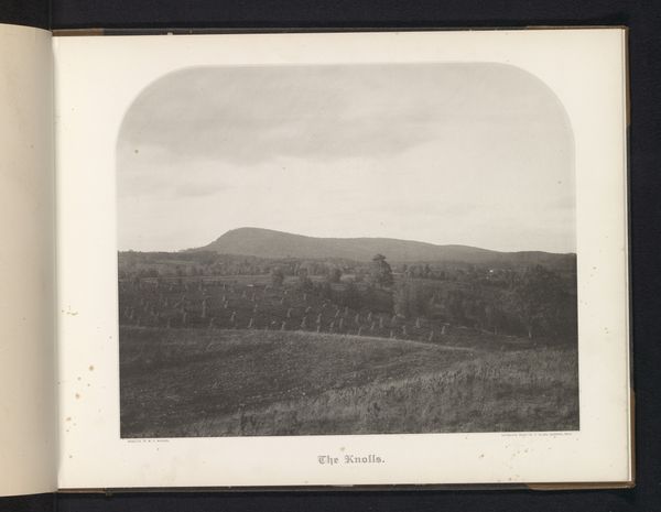 Editor: So, here we have M.P. Warner’s “Mount Holyoke,” a gelatin-silver print made sometime between 1883 and 1888. It's quite a serene landscape, very tonal. What strikes you about this piece? Curator: The labor involved in creating this seemingly simple photograph is significant. Think about it: the collodion process to produce the gelatin-silver print demanded considerable skill and physical work, from preparing the chemicals to coating the plates. The whole act of physically making the work becomes the subject of it, to me. Editor: I hadn't considered that level of involvement. How does the choice of materials influence our understanding of the subject matter? Curator: Gelatin-silver prints, while capable of capturing detail, often lack the sharp precision of later photographic processes. That softness imparts a specific mood but also hints at the economic accessibility – or lack thereof – of photographic technology at the time. This process connects to the class dynamics and the consumer market for landscape imagery. What social strata had access to such technology? What ideologies did those materials transmit? Editor: That makes me rethink the composition entirely. I see how the print itself isn’t just a record, but a product shaped by industrial and economic realities. Curator: Precisely! The labor is embedded within the aesthetic experience itself. We, as viewers, must understand it to grasp this image fully. Consider the transportation needed to photograph on location, the studio involved, and what all of that signifies beyond a pastoral landscape. Editor: I see this piece differently now. The layers of production, material accessibility and labour involved give it a much more profound depth. Curator: Yes, shifting focus from the subject alone, to the means of its production. It's like revealing a hidden dimension to the art.