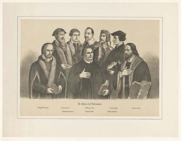 This anonymous print, entitled "The Heroes of the Reformation," showcases key figures with Martin Luther prominently displaying scripture. The open book, a potent symbol, represents not just knowledge but also revelation and the accessibility of divine wisdom, themes central to the Reformation. Consider how similar gestures and settings appear in earlier religious art, such as scenes of Christ teaching from the Gospels. Here, the act of presenting scripture carries echoes of authority and truth-telling. But in contrast to the singular figure of Christ, Luther is surrounded by supporters, suggesting a communal aspect of interpretation and belief. This symbol of the open book evolves through history, shifting from sacred to secular contexts, embodying enlightenment and the pursuit of knowledge. The psychological power of such images lies in their ability to evoke collective memories and aspirations. They act as a focal point for both belief and dissent, continually resurfacing and adapting in response to humanity’s evolving spiritual and intellectual needs.