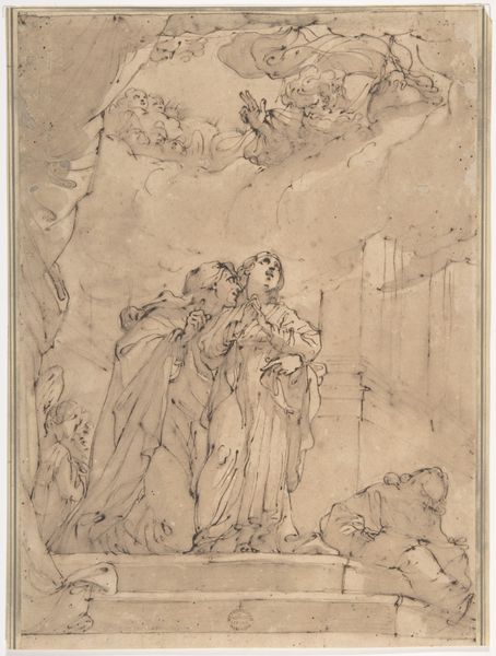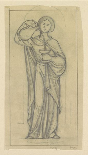 Editor: This is Charles Herbert’s "Pencil Drawing of SS. Christopher and Anthony from a Bas-Relief by Giovanni da Pisa." It's quite small, just a pencil drawing, but the figures have such weight. What can you tell me about this work? Curator: Consider the labor embedded here. Herbert meticulously copied another artist's bas-relief. This act of replication, using readily available pencils and paper, democratizes access to high art. Where does the value truly reside – in the original sculpture, or in Herbert's accessible interpretation? Editor: That's a fascinating point. It makes me think about the role of art in society. Curator: Precisely. And how materials and reproduction shape that role. I've learned a lot today. Editor: Me too. Thanks!
