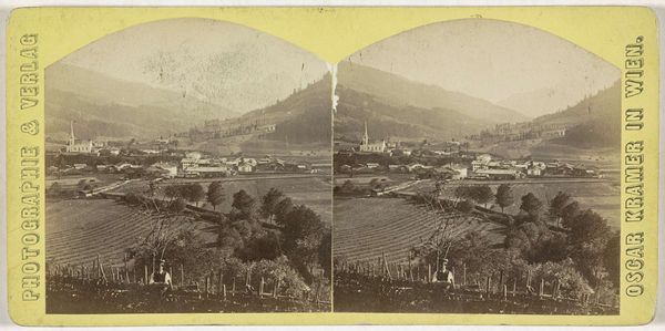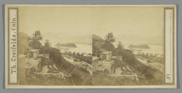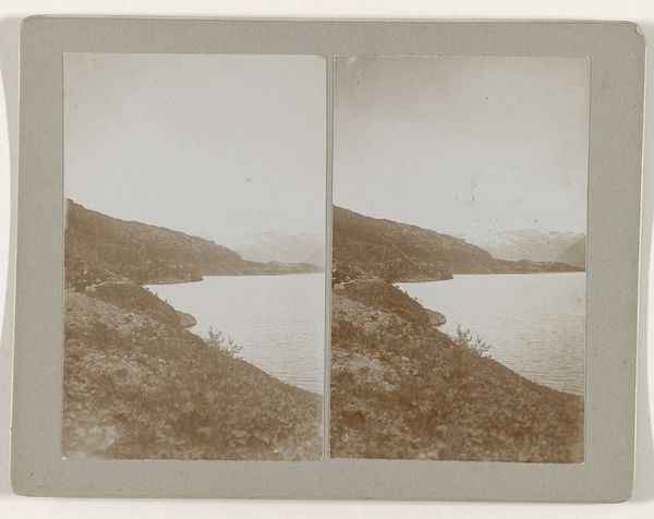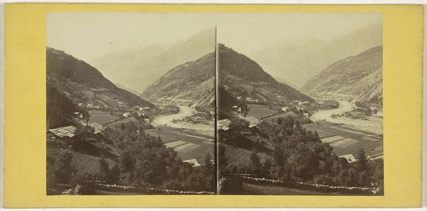Editor: So, here we have "Gezicht op de bergen achter het Buttermere," taken sometime between 1854 and 1880, attributed to the London Stereoscopic Company. It's an albumen print – a type of photograph popular back then. The image feels so peaceful, almost… lost in time. What do you see when you look at this piece? Curator: Ah, yes, this whispers to me of simpler times. There's such stillness here, a real connection to the raw beauty of nature that folks were chasing back then. I see this work straddling realism and romanticism: those meticulous details of the grass verge pull you into reality, but then the misty mountains... suddenly you're floating on a dream, aren’t you? Editor: Definitely. The mist softens everything. It's interesting you say 'raw beauty.' Does that imply it’s unedited or in its original condition? Curator: Raw as in untouched by industrial grime, I'd say. Nature idealized, perhaps? The Romantic artists believed the sublime resided in grand landscapes like this; perhaps the London Stereoscopic Company captured that longing in chemical form, eh? Don’t you think? Editor: That makes sense. It does feel like more than just a document, like they wanted to capture something more. The scene almost fades into the distance. It's less like a mountain range and more like a mirage of the landscape itself. Curator: Precisely! That play of light, that fading… they were creating atmosphere, manipulating the scene. Landscape photographers from this period had a real gift, capturing what they wanted us to see. I feel it. It evokes something that can't quite be articulated. Editor: I didn't expect to feel so much, seeing what I originally just thought of as an "old photograph." Curator: Indeed. Beauty hides in the mundane, doesn’t it? The world's beauty is a mystery revealed in the most accessible of artifacts, a portal of time travel if we dare focus our gaze upon it.