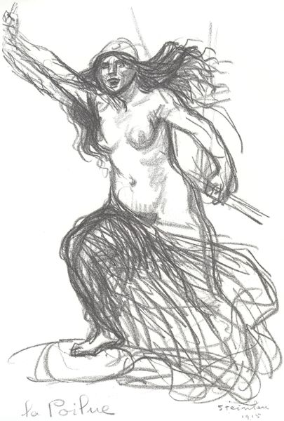 Curator: This sketch, aptly named "Three Nude Women Dancing," appears to be a work by Théophile Alexandre Steinlen, known for his intimate depictions of everyday life and, particularly, the female form. What’s your immediate reaction? Editor: Raw energy. The charcoal strokes feel almost frantic, capturing a sense of motion but also an undeniable tension in the figures. There’s a vulnerability here. Curator: It is executed using charcoal and ink, which lends itself to the swift capturing of form and movement. One can imagine Steinlen working rapidly, perhaps in a studio, trying to record the dancers in an intimate, off-guard moment. He’s really highlighting the medium here. Editor: And I find that choice intriguing given his era! The commodification of the female body for consumption was at a fever pitch then. Was he critiquing that exploitation through the medium, reminding us that it's simply lines on paper, a construct? Or, through the sketched lines of their bodies, is he showing how they could perhaps liberate themselves from traditional societal boundaries through performance? Curator: That is possible, but given Steinlen's larger body of work, he was often commissioned to portray working class bodies doing a number of daily actions for Parisian periodicals and papers, and sometimes the printing method of these images would give it a grainy, soft touch that almost resembles this exact artwork! Was Steinlen trying to show the women’s true beauty or worth by capturing their liveliness, making it available to other classes? Editor: Hmm, that raises another layer, doesn’t it? By presenting it to the bourgeois viewer in mass consumption and art, did it challenge the notions of respectability surrounding class, performance and nude figures? Who held access and agency in shaping cultural values then? Curator: Ultimately, his means for production in publications and art is fascinating, and he captures an energetic moment between these three people. Editor: Definitely something to think about given his legacy of artistic interpretation, and its contribution to wider discourses on identity, body autonomy, and power.