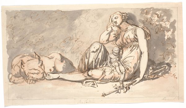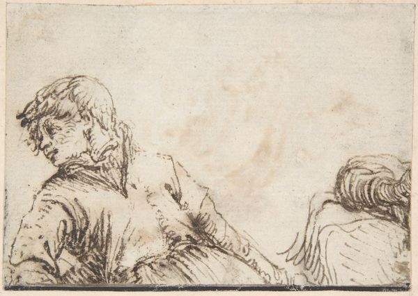 Jean-Antoine Watteau created "Sitting Couple," a drawing with dimensions of 24.1 x 34.9 cm, using chalk to render the subjects and their scene. The composition, which appears deceptively simple, places two figures in an undefined space, filled with the texture of the paper itself. Watteau's deft use of line creates a sense of movement and fluidity. The man's dynamic gesture, pointing outwards, contrasts with the woman's static pose, a composition that encourages us to question the nature of their interaction and the meaning behind their gestures. His work destabilizes conventional portraiture by focusing on the fleeting moments of human interaction rather than idealized representations. The interplay between light and shadow, achieved through subtle gradations of chalk, further enhances the emotional depth of the drawing. Watteau prompts a re-evaluation of traditional notions of beauty and representation, inviting viewers to engage with the artwork on a more intellectual and philosophical level.