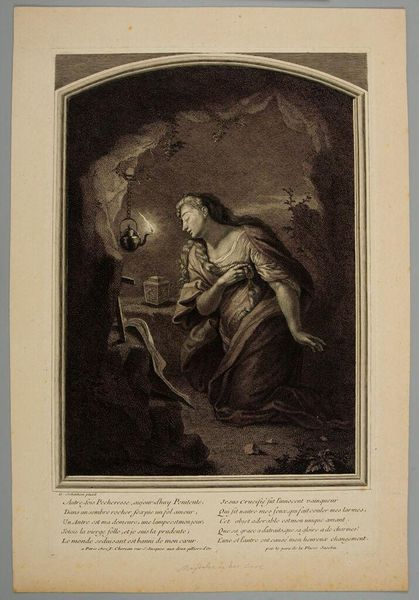 Editor: This is Hendrick Goudt's "Ceres Changes Stellio, the Son of Metanira, into a Lizard." It has such an eerie quality. What's your read on this strange transformation scene? Curator: It's a wild tale, isn't it? Goudt really captures that moment of mythic reckoning. I see the light illuminating Ceres, the goddess, almost as if she's caught mid-spell. Do you notice how the faces around her react? Editor: It’s quite expressive! There's shock, fear... a real sense of witnessing something otherworldly. Curator: Exactly! And that lizard slithering away... Maybe it's about the dangers of disrespect, or the wild power of nature’s cycles. What do you make of the setting? Editor: The deep contrast makes it feel like the viewer is peeking in on a secret, hidden world. I’ll definitely have to think about this one some more. Curator: Absolutely! And who knows what other secrets it holds. That's the joy of art, isn't it? Always something new to discover.