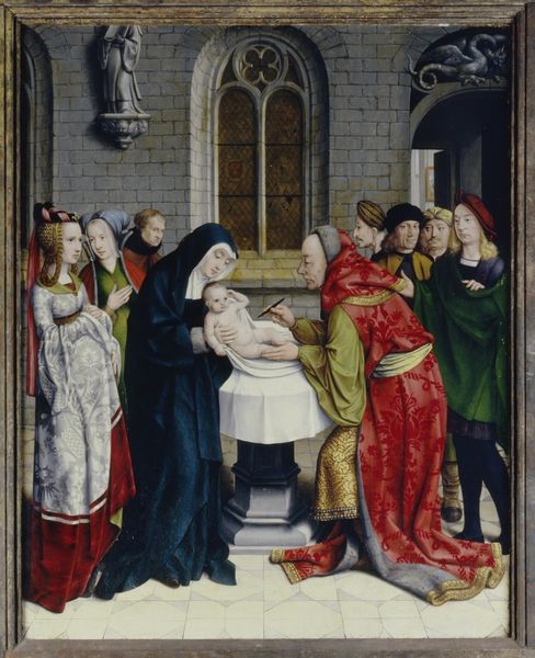 This panel, made by an anonymous artist, depicts the birth and naming of Saint John the Baptist. Observe the subtle but crucial gesture of Elizabeth in bed, reaching out. This simple act speaks volumes about the nurturing essence of motherhood. The motifs above, framed within the arches, echo a return to earlier forms, reminding us of the cyclical nature of artistic expression. Note how gestures of care reappear across art history: consider the protective embrace in ancient Roman sarcophagi, or the gentle touch in Renaissance depictions of the Madonna and Child. Such gestures resonate deeply, evoking primal memories of safety and affection. This image engages our collective memory, revealing how certain emotional and psychological states transcend time. Just as John's birth foretold Christ's arrival, so too do these recurring motifs signify the ongoing, evolving narrative of human experience.