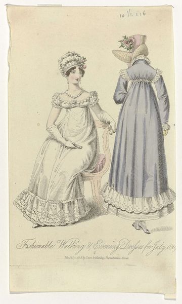 Louis Berlier created this print, titled La Mode, in France on August 15, 1849. It offers us a glimpse into the fashion of the time, but also into the social expectations and roles of women in mid-19th century France. The two figures are dressed in elaborate gowns and bonnets, showcasing the styles of the upper class. Their attire is not merely clothing, but a statement of identity and status. Fashion plates like this one were instrumental in dictating trends, reinforcing class distinctions, and shaping the visual culture of femininity. One can imagine the tight corsets, the layers of fabric, and the restricted movement, all of which were part of the lived experience of women in this era. Consider the historical context: France in 1849 was a society grappling with the aftermath of revolution, class tensions, and evolving gender roles. This image captures a moment in time, reflecting the aspirations, constraints, and performances of identity through fashion.