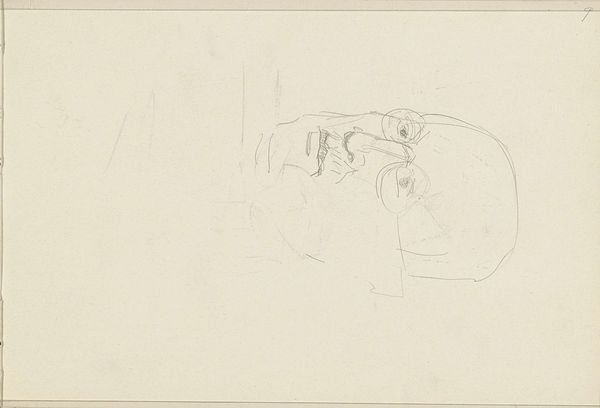 This is Isaac Israels' self-portrait, a pencil drawing that now resides in the Rijksmuseum. At first glance, you're struck by the immediacy of the sketch. Delicate lines dance across the page, capturing the artist's likeness with remarkable economy. The composition is asymmetrical, with the head tilted to the left. This creates a dynamic tension within the frame. Israels' approach to form is intriguing. Rather than meticulously defining every contour, he uses a series of broken lines to suggest the shape of his face, playing with the semiotic idea of indexical signs. The lines coalesce to give the impression of his features. Consider the negative space around the head. It's not merely emptiness, but an active element that shapes our perception. The incompleteness challenges the traditional notion of portraiture, suggesting that identity is always in formation, never fully fixed. It's a subtle yet powerful statement about the self and representation.