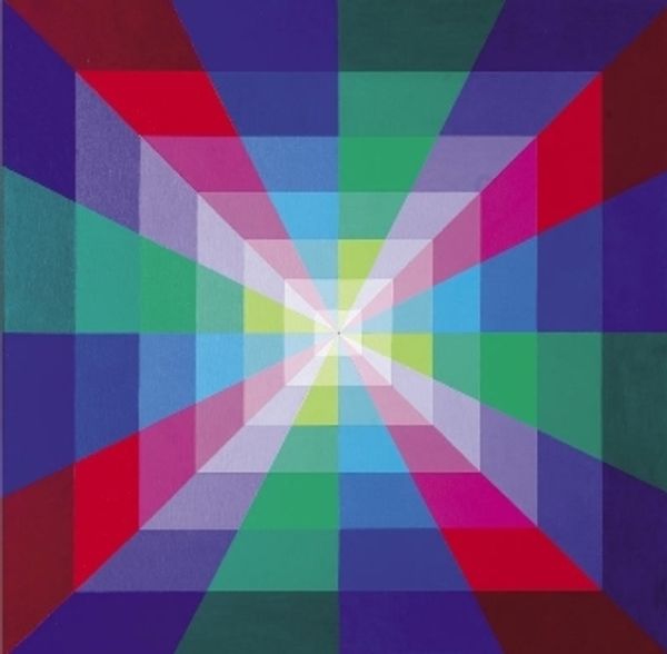 This is "Perspective au cercle rouge" by Martha Boto. She painted this using, what looks like, fairly flat areas of colour to create a real illusion of depth. What gets me about this piece is the surface. It is not trying to trick you into thinking it is anything other than a painted surface. The paint isn’t thick or luscious, but it is very present. In the edges of the square you can see the faint brushstrokes like a ghostly trace of Boto’s hand. They remind you of the choices she made, a record of her thinking and feeling. Look how the circle in the middle doesn't *quite* line up with the edges of the squares. It is this tension between the hard edged geometry and the soft touch of the hand that really makes this painting sing. Like Josef Albers and those colour squares he was always painting, Boto seems to be asking us how we can think differently through colour.