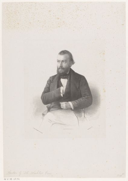 Curator: This is a graphite drawing from the 19th century titled "Zelfportret" attributed to Georg Otto. It’s rendered in the style of realism and is a self-portrait. What’s your initial impression? Editor: Brooding. There's a distinct weight in his eyes, amplified by the medium itself—graphite conveying a sense of thoughtful constraint. Curator: Given the social history of portraiture, and self-portraiture, specifically in the 19th century, the artist's choices become a mode of self-assertion. What kind of societal performance is at play here? Editor: I’d say this piece reflects the complex dynamic between individual identity and social expectation, characteristic of the Realism movement in Europe. It appears that Otto wanted to convey an image of respectable, perhaps even intellectual middle class. The clothing, for instance, reads a bit like visual signaling for his target demographic. Curator: I see that. Consider then the act of rendering himself with such intense gaze in a pencil drawing. Is he resisting the grand, heroic portraiture prevalent then? Or is this medium perhaps related to limited access to more durable media due to his place in society? Editor: It could be a comment on accessibility in the art world but at the same time, graphite allowed for a unique level of detail, right? Detail crucial to communicating his internal state, even if subdued. The very act of staring back at the viewer, directly, claims a certain power. Curator: A power claim perhaps interwoven with anxiety as rapid industrial and social change increasingly questioned traditional power structures and definitions of identity? This may very well signal awareness, not just presentation. Editor: I think that's right. Ultimately, a deeper reading needs to consider that visual statements, whether of status or doubt, often became enmeshed with those broader upheavals. This piece feels right at that intersection. Curator: Precisely, it speaks to the turbulent formation of a modern self, caught between tradition and transformation. Thank you for your input! Editor: It's been illuminating for me, too, recontextualizing his work as part of a greater history.