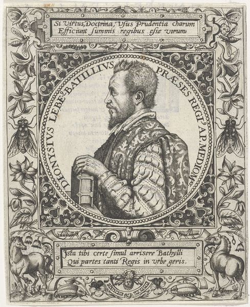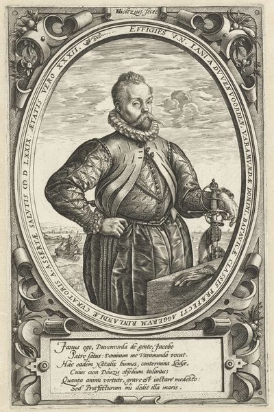 This is an engraving of Jan Baptist Houwaert, made by an anonymous artist. The print portrays Houwaert, a figure of some standing, framed by allegorical figures. The image creates meaning through visual codes, cultural references, and historical associations, inviting us to consider its social and cultural context. Made in the Netherlands, we can see the distinct influence of the Northern Renaissance in the detailed portrayal of the sitter, the ornate frame, and the classical figures that reference the learning of the period. Given the presence of his coat of arms, and his armor, this man clearly belonged to the upper classes. To understand the image better, it is important to study the social and institutional conditions of artistic production in the Netherlands, and the role that such images played in shaping and reinforcing social hierarchies. The historian uses such prints as valuable resources, to better understand the relationship between artistic representation and social identity.