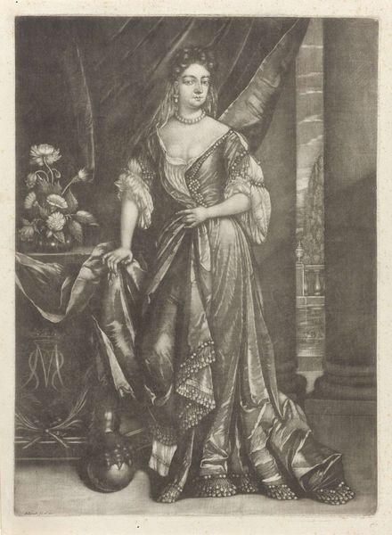 This print portraying Jane Goodwin was made by Pieter van Gunst, using a technique called mezzotint. This process involves roughening a copper plate with a tool called a rocker, then selectively smoothing areas to create lighter tones. Look closely, and you’ll see how this manipulation of texture gives the image its distinctive velvety appearance. The draped fabric, for example, has a tactile quality that’s quite different from the smooth surfaces often found in engravings. Mezzotint was valued for its ability to produce rich tonal gradations and subtle shading, and was a popular choice for reproducing paintings. The labor-intensive nature of mezzotint meant it was often used for high-end portraiture like this, catering to a wealthy clientele. Each print represents hours of skilled work, transforming the copper plate into a matrix of light and shadow. So, next time you see a mezzotint, remember the artistry and labor embedded in its making.