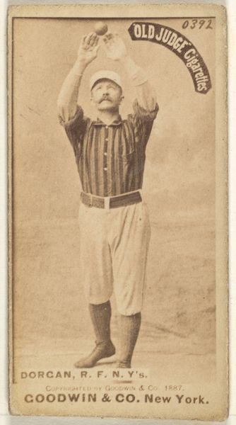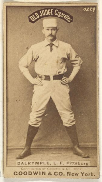 This photographic print of John Joseph "Joe" Gerhardt was created by Goodwin & Company as part of the Old Judge series for Old Judge Cigarettes in the late 19th century. It captures a moment when the commercial and the cultural became entwined. Made in the United States during a time of rapid industrialization and urbanization, baseball emerged as a popular form of entertainment, reflecting the changing social landscape. The image creates meaning through visual codes. Joe Gerhardt's baseball uniform, his confident pose, and the very fact that his image was used to sell cigarettes speak to the growing commercialization of sports and leisure. This card represents the cultural shift towards mass consumerism and the use of celebrity endorsements in advertising. Understanding this image requires delving into the history of baseball, advertising, and the social norms of the time. It's a reminder that art and commerce are often intertwined, reflecting the values and priorities of the society that produces them.