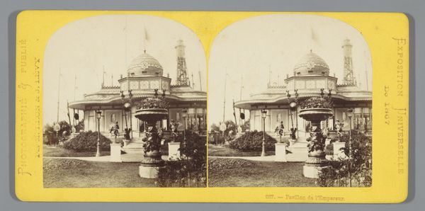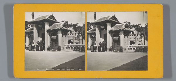 This is a stereoscopic card showing the Chinese pavilion at the 1900 Exposition Universelle in Paris. While we don't know who took the photograph, its mass production speaks volumes about the industrialized world of that time. Stereoscopic cards like this one were made through a combination of photographic and printing techniques, offering a cheap thrill for the late-19th century consumer. The photographic negative captured the image. From there, it was mechanically reproduced on paper using photo-printing technologies. The black and white image lacks the color and texture of real life, but the stereoscopic format creates a convincing illusion of depth. By viewing the card through a special viewer, a single 3D image appears. This simulates binocular vision, and was all the rage at the time. The photograph itself captures the exoticism and orientalism that underpinned the Exposition Universelle. Pavilions like these were not simply displays of culture. They were expressions of global power, where nations showed off their technological and colonial achievements. The production and consumption of images like this played no small part in that global dynamic.