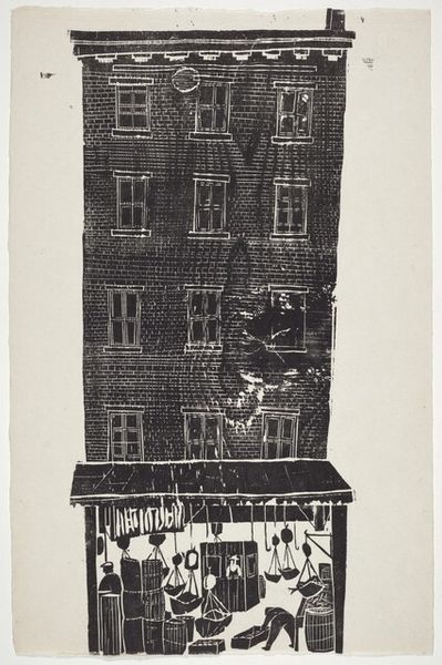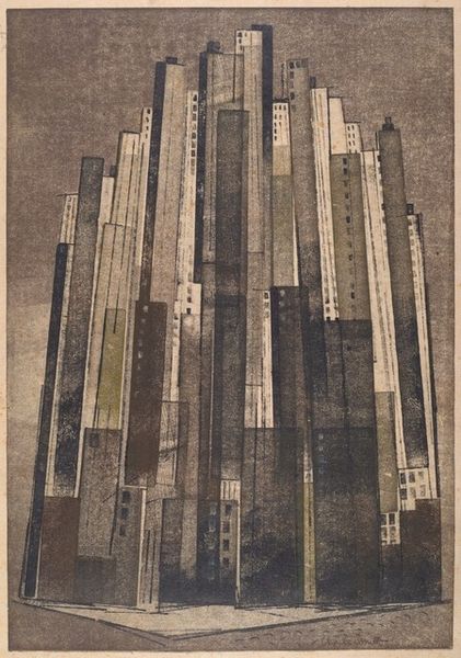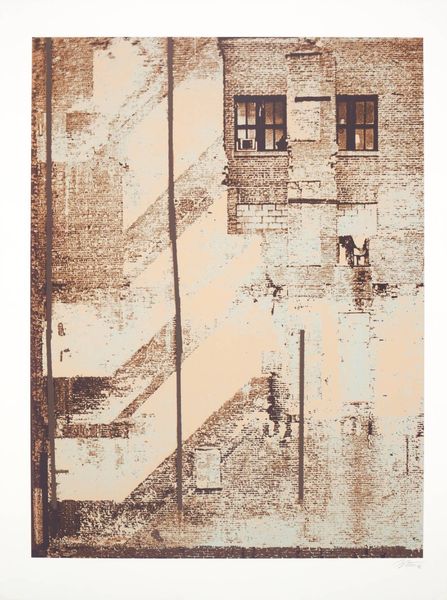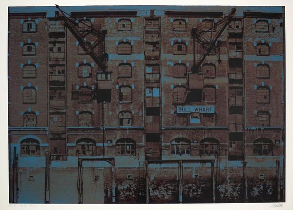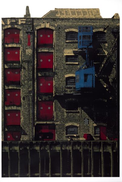Curator: Gerd Winner’s "Sunday Afternoon II" presents a stark industrial scene, residing here in the Tate collection, and rendered as an image measuring 959 by 658 millimeters. Editor: It’s got this heavy, brooding feel—almost like a stage set, but for a play about urban decay. Curator: Winner was very interested in the visual culture of industrial spaces and how those spaces get used in a public context. Editor: The crane feels oddly poised, frozen mid-action, or perhaps in anticipation of something. Curator: Consider how post-war artists used industrial imagery to represent working-class life in Europe. Editor: It makes me wonder what stories those silent walls could tell. Curator: I think Winner captures something essential about the modern urban experience. Editor: Yes, a reminder that even in stillness, there's a story unfolding.