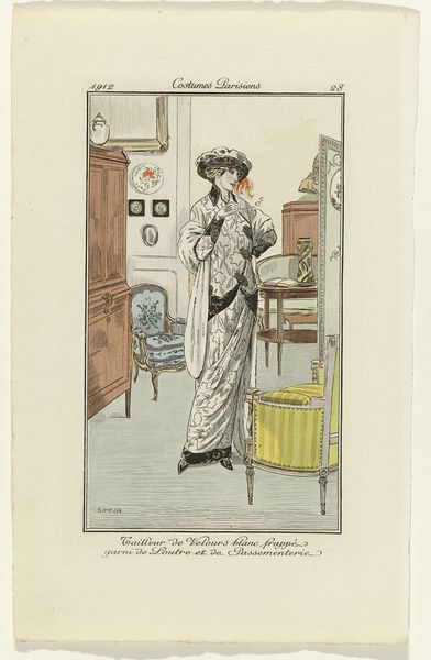 Curator: This intriguing interior scene is by Elizabeth Rigby. Though the date and title are unknown, it resides in the Tate collections. Editor: It has such a still quality. It's like stepping into a quiet moment, the light falling in stripes across the floor. Makes me want to pause. Curator: Absolutely. The dog there in the corner seems to feel the same. The window bars cast prison-like shadows, yet there's a serene sense of domesticity. The woman is working at her embroidery. Editor: The embroidery, yes – a very feminine pursuit – but it almost feels subversive somehow. Is she stitching her escape? The locked door certainly adds to that feeling. Curator: The symbols are so interesting. The dog, a traditional symbol of loyalty, seems more imprisoned than loved. And the woman’s back is to the door, is she ignoring the opportunity for freedom, or perhaps she doesn’t even notice it? Editor: Maybe she’s content to be bound by love and duty. In any case, the subtle symbolism opens up so many possibilities. Curator: Indeed, it’s a small watercolor filled with a universe of emotions. Editor: You're right, there is a lot to think about.