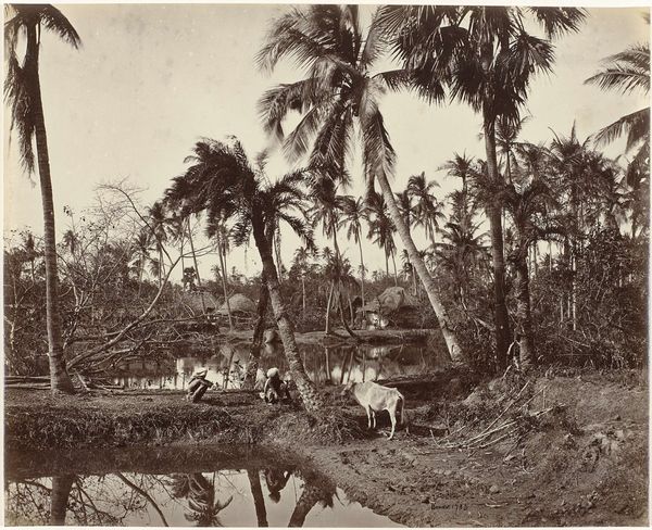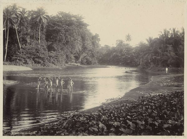 This photo of a boat along a palm-lined coast in what was then called the Dutch East Indies was taken by Onnes Kurkdjian. This is a black and white photograph, so the marks are all about light and shadow. The composition is structured around vertical palms and a curved horizon. It's a quiet, meditative scene. Look at the way the light reflects off the water, each ripple a tiny brushstroke. You can almost feel the humidity in the air, the stillness of the water. It's like a dream, or a memory. The boat in the distance adds a human element, a sense of scale, but it doesn't disrupt the tranquility. It is beautifully composed, but it's the specific textural qualities that intrigue, from the rough bark of the trees to the soft, hazy sky. The way Kurkdjian captures this tropical landscape makes me think of 19th-century landscape painters like Frederic Church, but without all that dramatic grandeur. It's a more intimate, personal view of nature. Art isn't about answers, it's about questions and feeling your way through them.