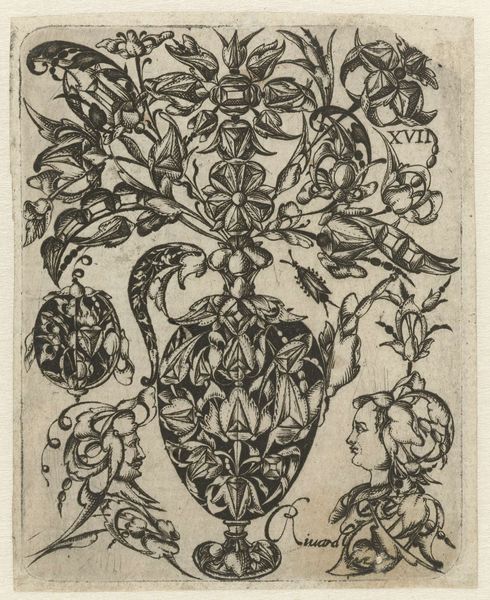 Claude Rivard made this print with etching in the seventeenth century. In it, an oval and a rectangle are filled with floral ornament. We can think about the social life of prints like this one in seventeenth-century Europe. Manuals and pattern books were increasingly common and played an important role in the standardization of design across Europe. Etchings, like this one, were a relatively inexpensive way to circulate designs. Rivard was French, and we can imagine prints like these being used to inform design in luxury trades, such as tapestry and goldsmithing. These trades were patronized by the court, so an image like this can tell us something about the values of absolutist, early modern France. Studying images like this helps us to understand the ways in which art and design were circulated and consumed in the early modern period. We can learn more about this by consulting inventories, guild records, and other archival sources.