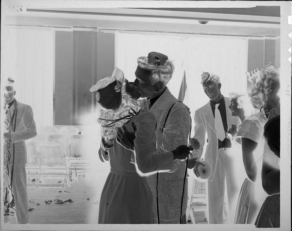Robert Burian made this untitled photograph of couples kissing on New Year's Eve, sometime in the twentieth century. It's all in shades of gray, like an old movie, or a dream. The tones are kind of reversed, like a photographic negative. I love the ghostly effect of the light and dark in this image. It’s full of embraces and New Year’s Eve revelry. But everyone is dressed as if they're in a hospital, or a theater, or some other kind of institution. The people seem to be wearing medical scrubs and hats, and in the center, a couple locked in an embrace. The composition, with its focus on the tender moment between two people in a crowd, reminds me a little of Garry Winogrand’s street photography. Like Winogrand, Burian captures a slice of life, a fleeting moment of human connection amidst the chaos of the city. But the dreamlike, almost surreal quality of the image gives it a unique power. It's a wonderful, strange picture.