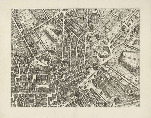 Curator: This engaging cityscape before us is titled "Bonn door Schenck voor Truchsess gewonnen, 1587." It's a print, an engraving specifically, made in 1588. Editor: My goodness, what a perfectly organized panic. It's fascinating. This density of lines and detail creates such a feeling of controlled chaos. Curator: Indeed. The early Renaissance style really lends itself to this almost mathematical breakdown of space. You have the city neatly nestled in its geometric boundaries. Editor: It's funny, isn't it? The attempt to bring order, and what emerges is the sense of humanity bursting out from inside all these constructed borders and sharp angles. A testament of life exceeding the plan. Curator: It does speak volumes, silently, about a certain will to conquer, to subdue. This map showcases the conquering of Bonn. And Peter Schenck appears to have engraved all this as if every corner has its part to play, if you pardon the historical pun! Editor: It makes me wonder how the artist feels about war, rendering it so precisely, almost coldly. I imagine what would someone experiencing a cityscape that changed in that way, the day it turned into the conquest described here, actually *felt*. Curator: And isn’t that the magic of art? While rendered through specific intentions and techniques, like Schenck’s engraving expertise, the artwork extends far beyond what one engraver may try to tell and how. This, despite the sharp focus, makes us imagine the before and after… the human in it all. Editor: Absolutely, it really shows the beautiful contradiction where constraint fuels liberation, even through meticulous engraving. In its rigid structure, the artwork captures so much about life's unpredictability.