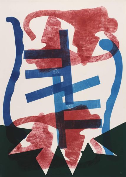 This abstract print by Yoshida Chizuko, titled "Impression from India," captures a moment in time through the emotive power of color and gestural marks. At the core, the handprint motif emerges, a universal symbol laden with cultural and historical resonance. Consider how the hand has appeared across civilizations: in ancient cave paintings as a signature of human presence, in religious art as a symbol of blessing or divine intervention. Here, the handprint suggests not just physical presence, but a deeper connection to experience, a kind of primal identification. The use of color, from earthy browns to vibrant reds, evokes a visceral response, a dance of shadow and light that speaks to the subconscious. These elements create a visual language that transcends literal representation, inviting us to contemplate the cyclical nature of human expression. Just as the handprint has evolved from ancient ritual to modern art, so too does our understanding of it shift and deepen across time.