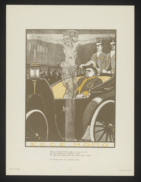 This is an image of ‘Le Petit Journal’ from December 17, 1892, illustrated by Fortune Louis Méaulle. The lithograph presents a chilling tableau of Kaiser Wilhelm II, embraced by Death, standing amidst a field of skulls. The composition employs stark contrasts. The dark uniform of the Kaiser is set against the pale shroud of Death. The skeletal remains in the foreground lead to a fiery horizon, creating a sense of depth and impending doom. These formal choices are not merely aesthetic. Consider the semiotic weight of these symbols: the Kaiser, representing power and authority, juxtaposed with Death, a universal symbol of mortality and the limits of earthly power. Méaulle destabilizes the conventional image of leadership, associating it with destruction and death. This challenges the values of militarism, reflecting broader anxieties about power and its consequences. The formal elements work together to create a powerful critique, questioning fixed meanings and inviting ongoing interpretation.