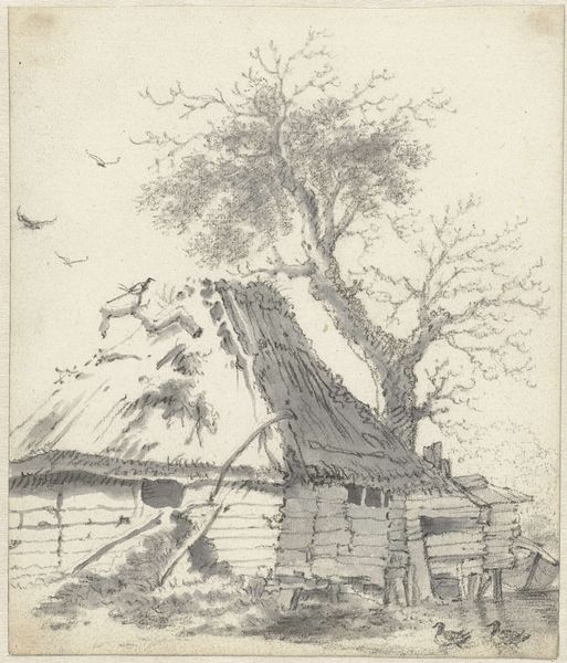 Editor: We're looking at Francesco Londonio's "Study Sheet: Farmhouses." It seems to be a sketch using pencil, charcoal, and chalk on paper, and is currently held at the Städel Museum. I’m really drawn to the raw, almost industrial feeling in these studies. What captures your attention? Curator: For me, it’s the overt emphasis on process that stands out. Consider the social context, and that Londonio elevates these studies, focusing on humble architecture. These aren't grand estates; it's the built environment of agricultural labor. Look at how he renders the thatch – how does that material function for the people who interact with it every day? Editor: That's interesting; I hadn't considered the labor aspect so directly. So, by focusing on these "ordinary" buildings, Londonio is making a statement about… Curator: He's challenging traditional boundaries between high art and craft, pushing us to contemplate the value inherent in structures born from necessity and toil. How are the dwellings depicted; sturdy or temporary? Editor: They seem…utilitarian. Made for a purpose, not necessarily beauty, though there *is* a kind of beauty in their simplicity. Does that simplicity say something about available resources or the cultural values around building? Curator: Precisely. And think about the materials themselves – chalk, charcoal, pencil, readily available. Cheap. How does the choice of medium impact your reading? Is Londonio celebrating a "less is more" kind of ideal, showcasing skills, the act of art production over opulent art material? Editor: So it's not just the *subject* that’s rooted in everyday life, but the *means* of depicting it, too? This definitely gives me a fresh perspective. Curator: Exactly. Looking closer, you’ll see how process shapes content, labor shapes the landscape, and that changes how we consider "art," no?