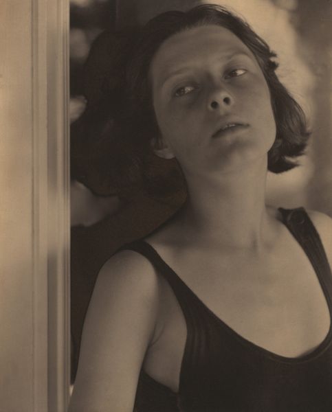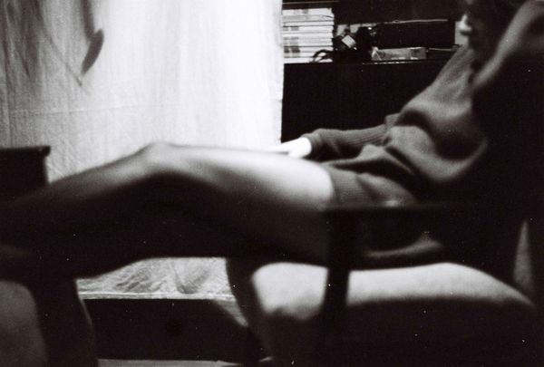 Curator: Here we have "Model Study 16", a 2008 photographic piece by Elina Brotherus. What strikes you most when you first look at this? Editor: Solitude, almost aggressively so. The back is turned, the shoulders are slumped – it suggests someone deeply in thought, or maybe even defeated. Then you have those scattered sandals on the side... remnants, relics, some symbols of leisure abruptly abandoned. Curator: That’s interesting, the “defeated” reading hadn’t struck me initially, but now that you mention it, the lighting—the sharp shadows that look almost like claw marks raking down the subject’s back—certainly adds a layer of vulnerability. It is a nude figure, but it also somehow refuses the viewer's gaze by showing the back of the person. Editor: Absolutely. It plays with the historical symbol of the female nude. Instead of sensual display, it suggests exposure of a different kind – a psychological one, perhaps. The artist is deliberately withholding something from us, subverting those long-standing tropes and expectations. It’s that contrast – the body partly exposed, yet emotionally closed off – that I find so compelling. The sun spot cast by foliage has an archetypal resonance -- life interrupted -- *vanitas* of simple pleasures. Curator: It makes you question your own role as the viewer. I wonder how much of Brotherus's intention here was to dismantle classical representation? How does she question our expectations when we encounter images of women in art? What does she propose instead? Editor: Perhaps it's an invitation to simply witness, to hold space for quiet introspection rather than demand revelation or beauty. The shadows might symbolize external pressures or societal expectations bearing down. It may propose not a disruption of established traditions, but a gentle redirect, allowing us to engage with ourselves through viewing a representation of our fellows. The back that is turned invites us to project. Curator: So it becomes almost a mirror reflecting our own inner states, rather than simply being an image of somebody else? Editor: Exactly. And the sandals reinforce this. You are forced to look at this portrait and ponder why their removal prompts feelings that seem universal in experience. Curator: The title itself also lends to this detached effect, referring to a “study.” That academic, almost clinical label takes away from an explicit understanding or interpretation. It positions the piece more as an observation. "Model Study 16" really removes the layers, no additional narrative context is given... Editor: ...allowing it to become more a meditation on vulnerability, solitude, and our complex relationship to looking. That's the joy in symbols, isn't it? The silence that prompts each of us to create a distinct song.
