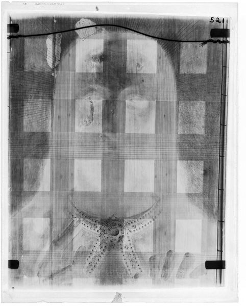 Editor: We’re looking at an X-radiograph of “Madonna Enthroned,” by Bernardo Daddi. It’s fascinating to see art through this scientific lens, but also eerie – almost ghostly. What does this x-ray reveal to you about the history of this artwork? Curator: This image provides invaluable insight. Beyond the surface, it exposes the artist's process, alterations, and materials. These X-rays help conservators understand the painting's structure and plan the best treatments. They also influence our understanding of the artwork's public role and history. What do you think museums gain from showing this behind the scenes aspect? Editor: That’s a great point. It makes the artwork feel more like a historical object, rather than just something pretty to look at. Curator: Exactly. It makes us question how the artwork has come to be displayed in a museum and how it has been taken care of. It gives the artwork more meaning than just its artistic beauty.