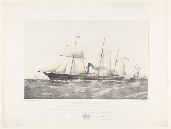 Editor: This drawing, “Vaisseau a Rames de 1785” by Berthaud Frères, rendered in pencil, print, and engraving, showcases a stately sailing vessel. I'm struck by the almost clinical precision, yet there's something undeniably romantic about it. What can you tell me about this work? Curator: It's fascinating how you pick up on that tension between precision and romanticism. I see this piece not just as a historical record, but as a potential commentary on maritime power and colonial expansion. Given its creation in 1889, long after 1785, we need to consider the French Empire's nostalgic or even propagandistic impulses at the time. Does it evoke for you any connection between exploration and exploitation? Editor: That's a powerful question! I hadn't considered the colonial context. The ship, so meticulously rendered, feels like a symbol of control and dominance, rather than simply a beautiful object. The idea that a vessel could be for more than just exploration definitely changes the way I see this work. Curator: Precisely! This wasn't just about scientific discovery or trade; these ships were instruments of power, deeply intertwined with issues of race, class, and global inequality. Who benefited from these voyages, and at what cost? Looking at this piece is an opportunity to reflect on those historical legacies and their resonance in the present. Editor: Thinking about it that way, I realize it's more complex and troubling than I initially perceived. I'll definitely have to explore those themes in more depth. Thank you for widening my perspective. Curator: My pleasure. Art has the capacity to show that, sometimes, to look closely at the world around us also demands a historical lens to contextualize how things came to be.