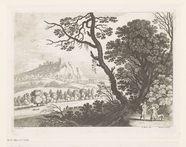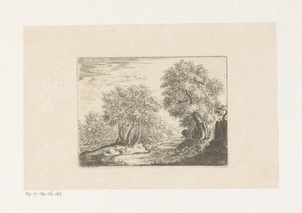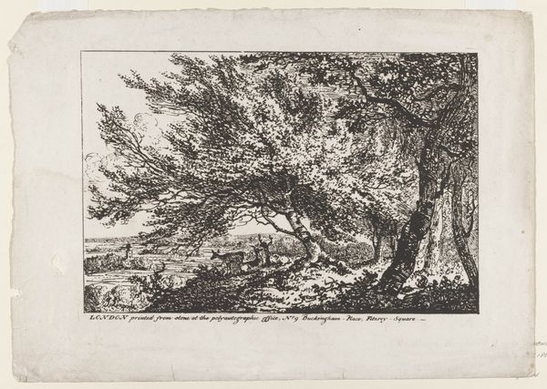 Editor: Here we have J.P. Møller’s "Skovegn", an ink engraving from somewhere between 1783 and 1854. It's such a detailed, almost dreamy depiction of the forest. The lighting is really striking. How do you connect with this piece? Curator: "Connect," you say. It whispers to my inner Romantic, doesn’t it? That gnarly, almost sentient tree dominates the scene – it *is* the scene, really. Møller, you know, was working right when Romanticism was having its moment, where nature wasn't just backdrop, but a powerful, emotional force. Notice the incredibly delicate lines? Like gossamer threads capturing a mood, not just a landscape. Does it evoke a feeling of solitude, maybe even a touch of the sublime for you? Editor: Definitely, I see the solitude, the almost overwhelming presence of nature... It's interesting you mention the Romantic period; I was getting more of a gothic vibe, like the setting for a spooky fairytale. Curator: Fairytale… or maybe a pilgrimage, a silent encounter? Consider this work alongside, say, Caspar David Friedrich. Less the grand spectacle, more the intimate communion. Møller invites you into the woods, yes, but to look inward. It’s about feeling, not just seeing, isn’t it? And I wonder, what personal stories get conjured in your mind by it? Editor: It makes me think about being lost in nature, but in a comforting way, if that makes sense. I learned how to find other levels to appreciate an artwork. Curator: Exactly! Isn’t it wonderful how art can mirror back our own inner landscapes?