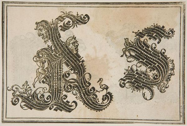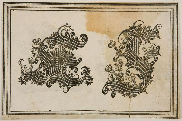 Curator: The Harvard Art Museums present to you, Letters L and M, by an anonymous artist. Editor: My first thought is how these letters transcend pure utility; they’re bursting with symbolic meaning, little worlds in themselves. Curator: Indeed. Look closely at the detailed craftsmanship. The anonymous artisan used complex production methods to transform these letters into ornate displays, far exceeding the basic function of conveying language. Editor: Precisely! The figures—cherubs, faces, beasts—act as visual cues, enriching the letters with layers of cultural and perhaps even psychological significance. Curator: Consider the consumption of this piece. How would someone interact with this design? Would it adorn a grand hall, maybe a book for the elite? Editor: It’s hard not to see the owl as a symbol of wisdom; the cherubs, innocence. These elements, blended with the letters, offer a narrative beyond mere alphabets. Curator: It’s remarkable how process and intention elevated these letters from the ordinary to exceptional pieces. Editor: A beautiful blend of artistry and cultural encoding! It really makes one ponder the power of images.