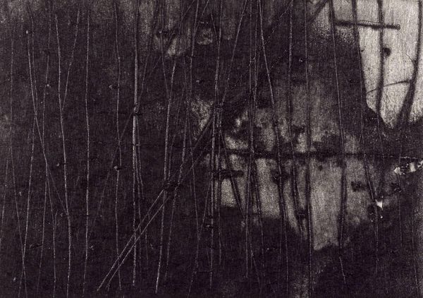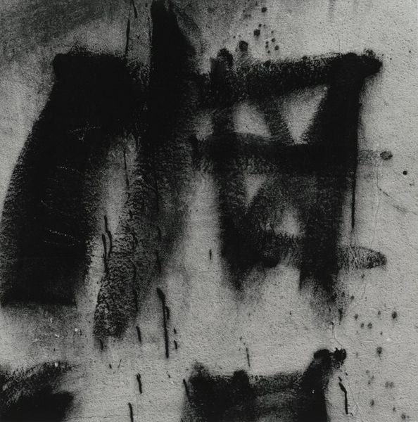 Editor: Here we have Aaron Siskind's "Rome 67 (Homage to F.K.)" from 1973, a gelatin silver print. I am immediately drawn to the texture, that grainy, almost tactile feel of the concrete, contrasted against the smooth, sweeping curves of the painted lines. What stands out to you in this photograph? Curator: I see a record of process, labor, and ultimately, urban consumption. Think about the material conditions: a wall, likely publicly owned, then painted, layered with graffiti, and captured via photographic print. This "high art" image is utterly reliant on those less-respected interventions and the industrial production of the materials. Editor: That’s a really interesting way to look at it. So, are you saying that Siskind’s choice to photograph something like graffiti on a wall is itself a statement? Curator: Precisely! Siskind elevates something typically disregarded as vandalism, tracing evidence of mark-making, essentially labor, on an urban surface. Furthermore, think about the political undertones; graffiti is often a form of protest, a visual manifestation of societal discontent painted onto public spaces. How does the act of photographing it shift its meaning or accessibility? Editor: I hadn't considered the aspect of elevating the discarded, of using what's readily available. So much street art employs exactly those elements. And that links back to the title, "Homage to F.K.," potentially referencing Franz Kline and his abstract expressionist paintings. It becomes this cycle of influence. Curator: Exactly! The high art and the so-called low art are interdependent, influencing each other through their materials, techniques and visibility within urban culture. What started as a defacement now resides within the context of fine art. The act of taking the photo reframes not just the wall, but the viewer’s own understanding of cultural and artistic boundaries. Editor: I'm really starting to understand the conversation about material conditions that the photo is trying to present. I’ll definitely look at art differently now, paying closer attention to production processes!