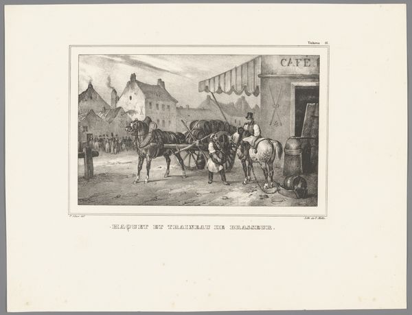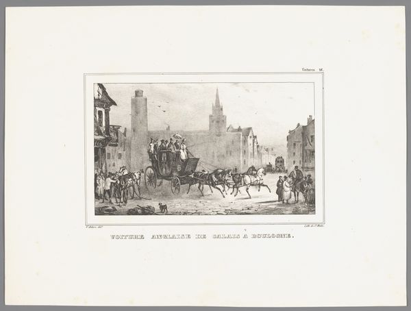 Victor Adam created this print, ‘Favorite’-omnibus wordt gepasseerd door een fiaker, sometime in the 19th century using etching techniques. The eye is drawn to the contrast between light and shadow, the way light reflects off the carriage, creating a focal point. The artist uses linear perspective, converging lines, to create depth, leading our eyes into the bustling street scene. The composition is carefully structured; the vehicles and figures are arranged to direct the viewer's gaze, with a visual rhythm and flow of movement. The print is composed of a delicate network of fine lines and intricate details. Adam’s mark-making reveals an interest in the material possibilities of etching. The artist’s skill with light and shadow not only defines the forms but also evokes a sense of atmosphere, of a moment captured in time. Consider how the formal elements of composition, line, and light function together to create a moment, inviting us to look closer and question what we see.