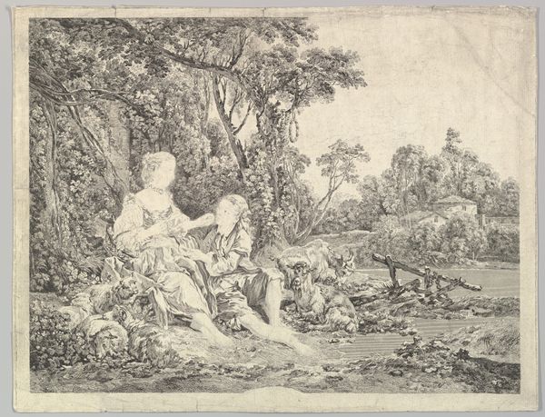 Francois Boucher created “Shepherdesses and Young Man Playing Bagpipe” using graphite on laid paper. Boucher, a leading painter of the Rococo style, captures an idealized vision of pastoral life, a popular theme among the French aristocracy. The scene, with its shepherdesses and musician, is set in a carefully cultivated, yet wild landscape. This constructed vision served as an escape from the rigid social structures and inequalities of the time. Look at the figures. What do you notice about them? Boucher often faced criticism for his subjects appearing too polished. Their fine garments and delicate features contrast sharply with the realities of rural labor. This piece highlights the romanticized views of the French upper class, who often overlooked the difficult conditions of the lower classes. The drawing becomes a symbol of the widening gap between the elite and the everyday person. The work invites us to consider the complex relationship between representation and reality. In his vision, Boucher transforms the French countryside into a theater for fantasy and desire, one that continues to provoke questions about identity, class, and power.