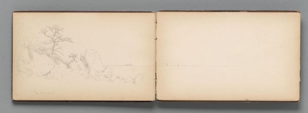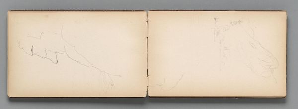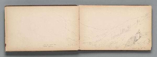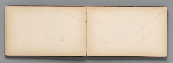 Curator: Sanford Robinson Gifford, known for his luminist landscapes, sketched this "Partial Mountain Landscape" – actually a double-sided drawing, with the "Partial White Mountain Landscape" on the verso. Editor: It feels so delicate, like a whisper. The faintest pencil lines sketch out these grand forms. It's more about suggestion than description. Curator: Gifford’s landscapes often captured the American sublime, but here, the partial rendering invites us to consider the relationship between perception, memory, and the construction of national identity through landscape. Editor: The composition, bisected by the book's spine, creates a diptych effect. The lines themselves, so sparse, almost seem to deconstruct the very idea of a landscape into pure form. Curator: Indeed, and if we consider Gifford's involvement in the Union Army, his landscapes can be read as meditations on territory, belonging, and the fractures within a nation during the Civil War era. Editor: It's fascinating how such subtle strokes can carry such weight. It gives me a lot to think about.