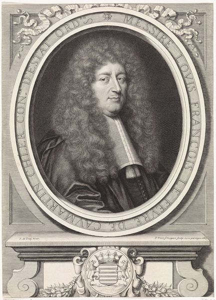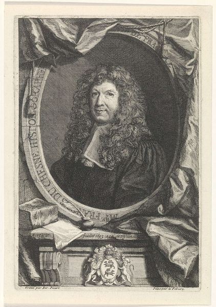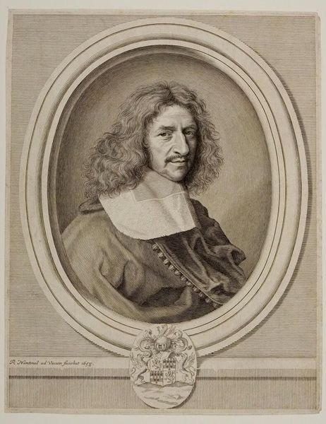 Richard Collin’s engraving portrays Joachim von Sandrart, a prominent 17th-century art historian and painter. The portrait, with its elaborate ornamentation, reflects the period's emphasis on status and intellectual achievement. Sandrart, positioned within an oval frame adorned with foliage, and with his family crest, signals the importance of lineage and reputation. The image speaks to the way identity was constructed and performed in the 17th century, particularly for those in elite circles. Consider the emotional resonance of this piece. What does it mean to have one's image carefully crafted and presented for posterity? How does this act of memorialization shape our understanding of history and individual legacy? The portrait offers a glimpse into the cultural values of the time, where appearances and accomplishments were critical in defining one's place in society.